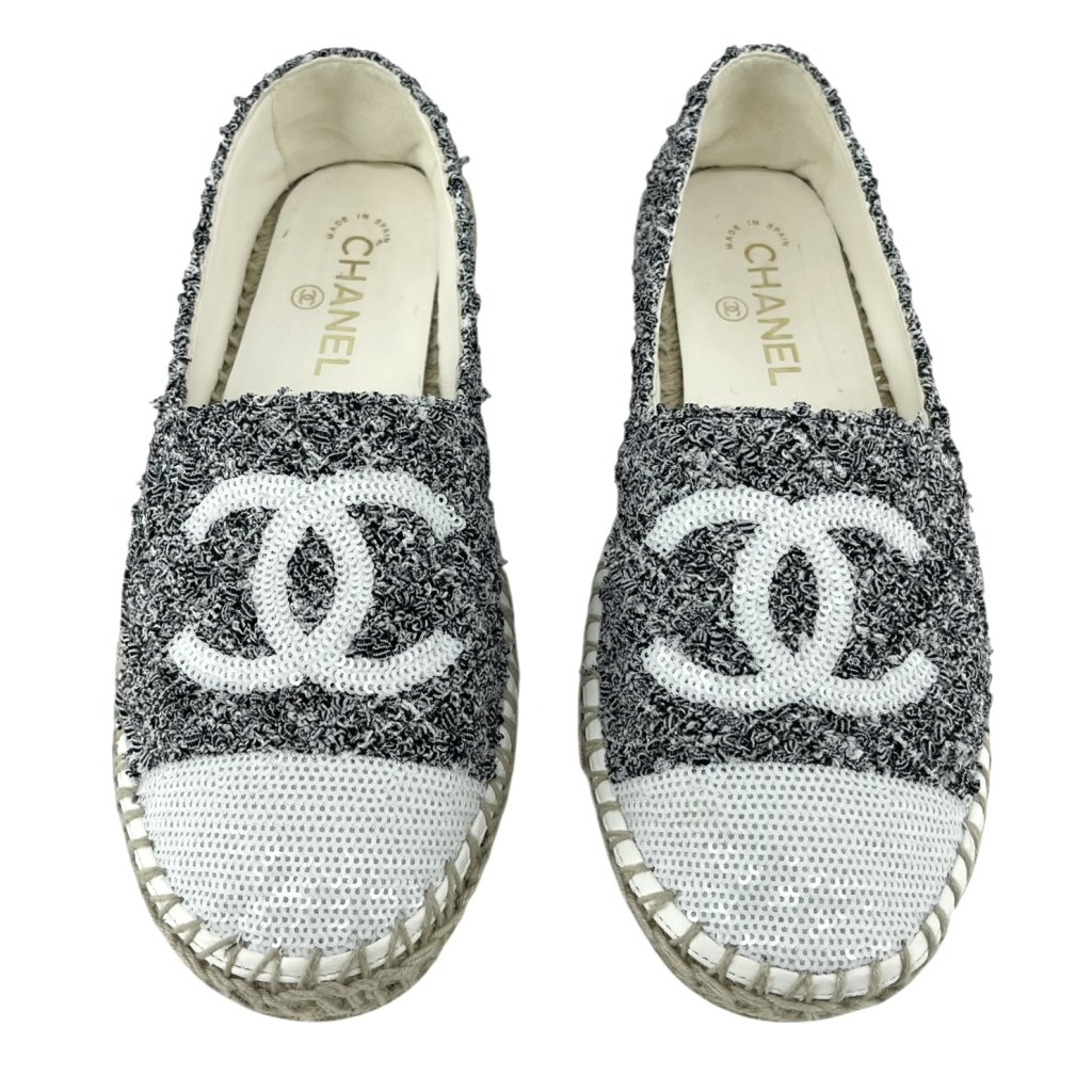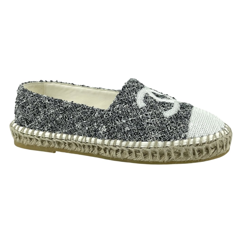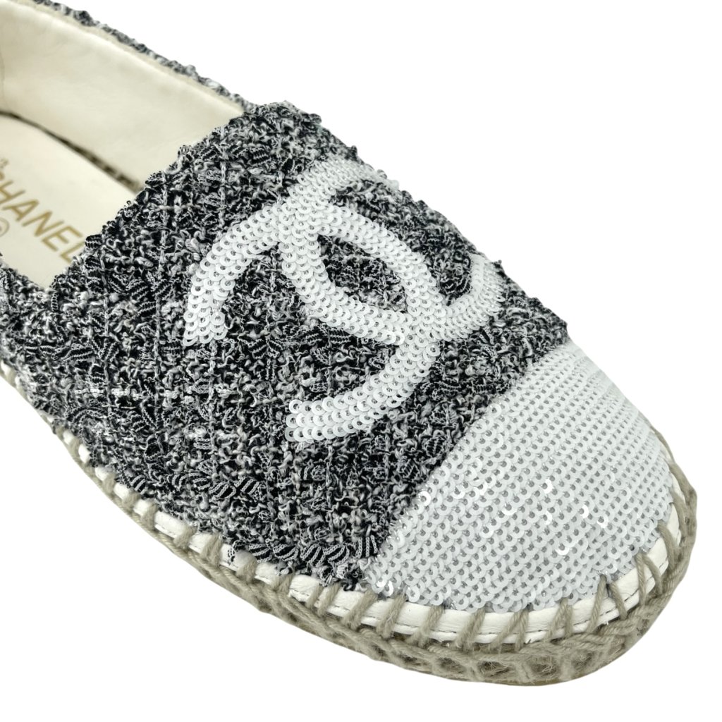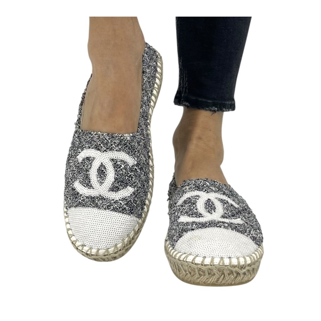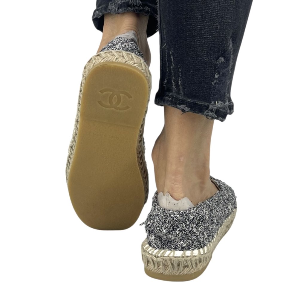 CHANEL Tweed Logo Espadrilles