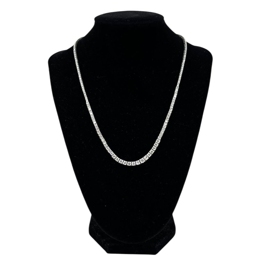 Materiál: | 14kt bílé zlato (16,50g), brillianty (8,30 ct), 185ks, G/SI |