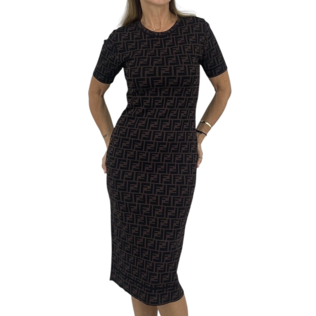 FENDI Midi Monogram Brown Dress