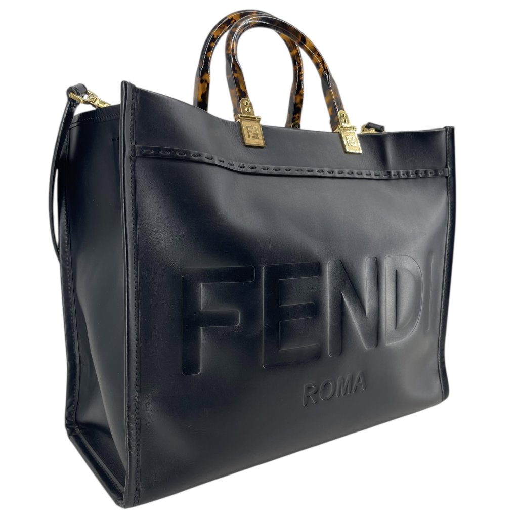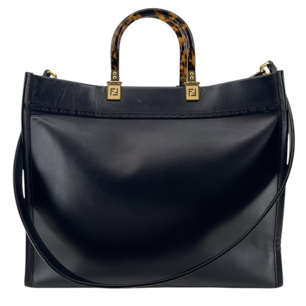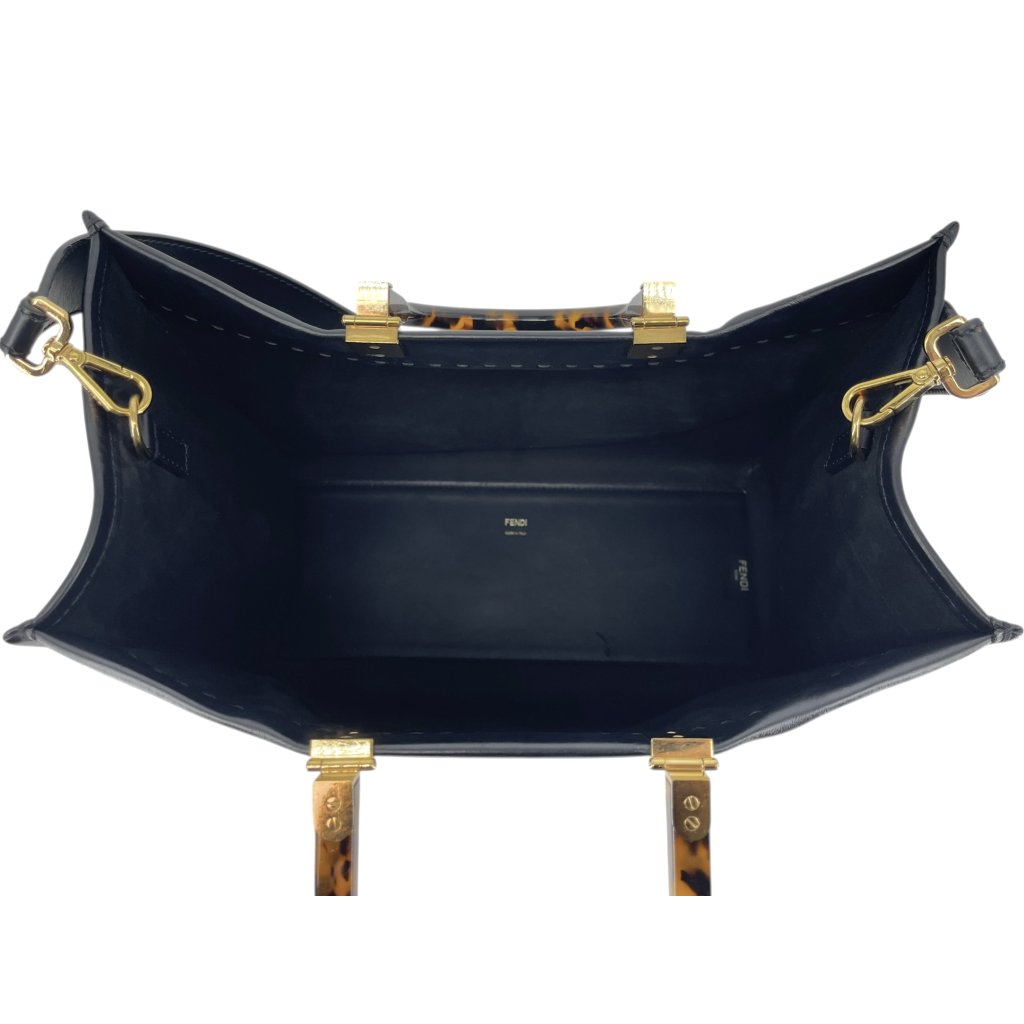 FENDI Sunshine Black Leather Tote Bag