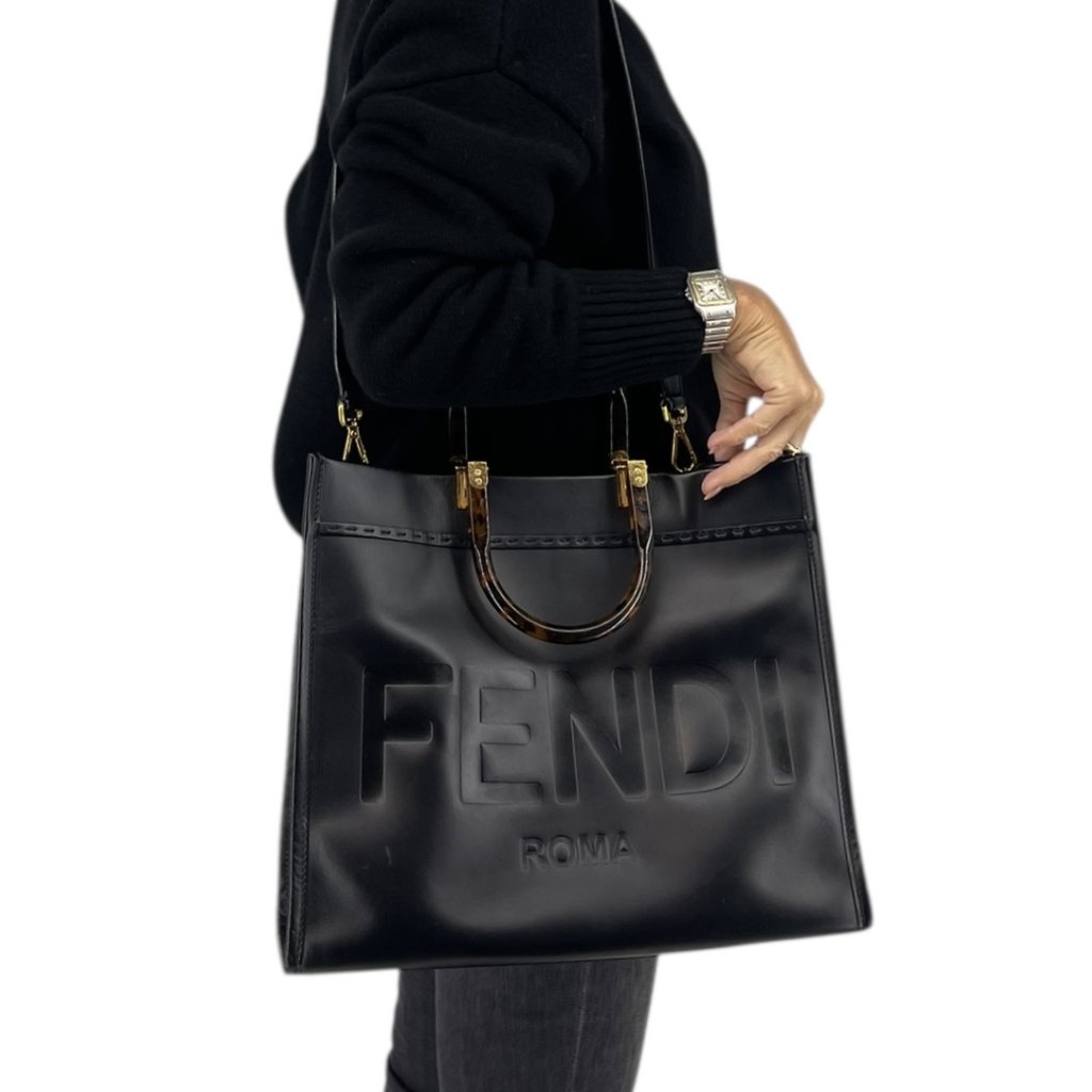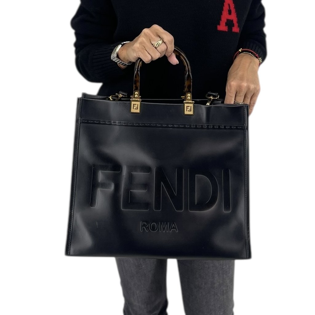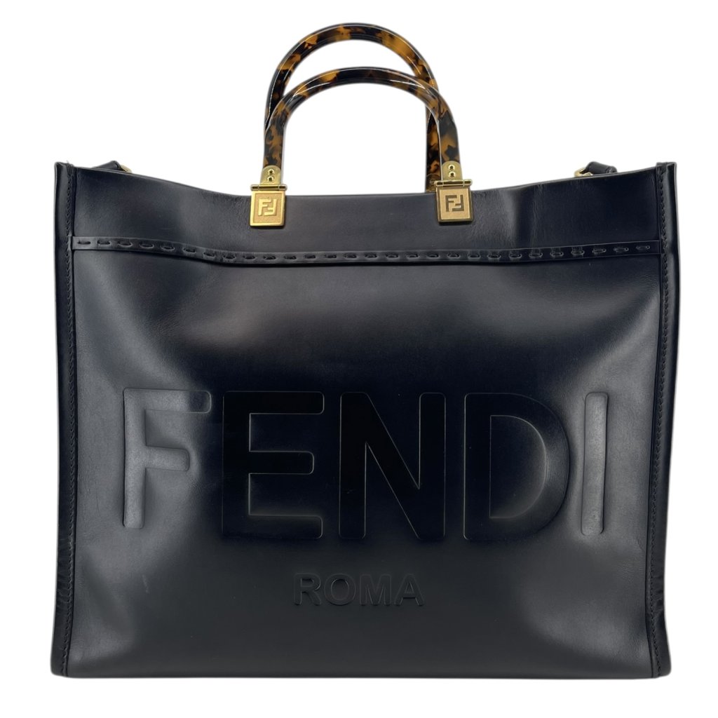 FENDI Sunshine Black Leather Tote Bag