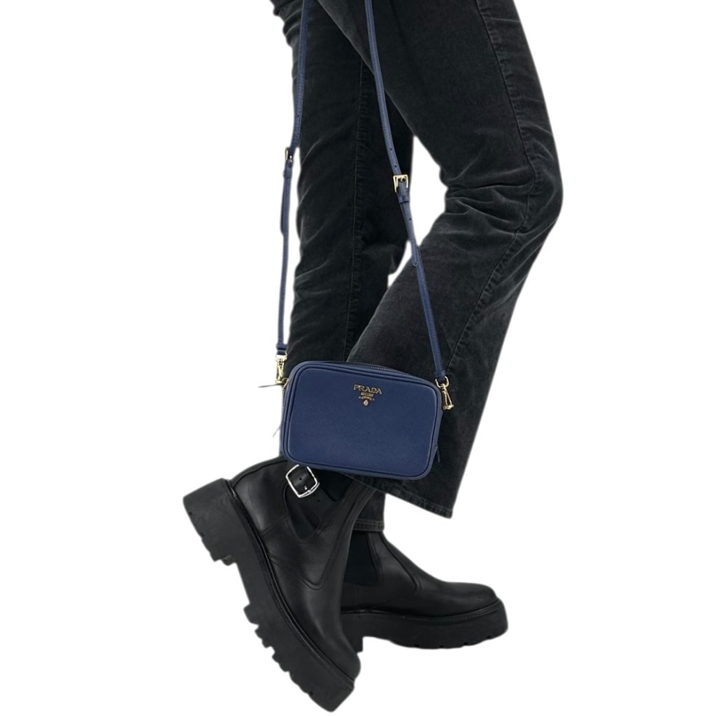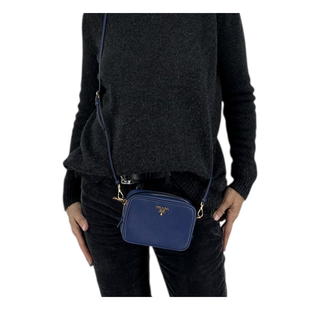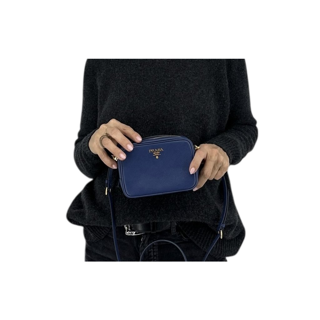 PRADA Camera Mini Blue Crossbody Bag