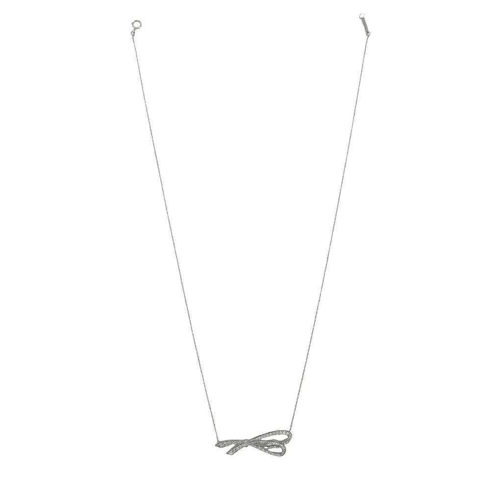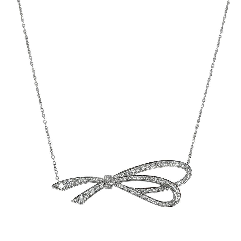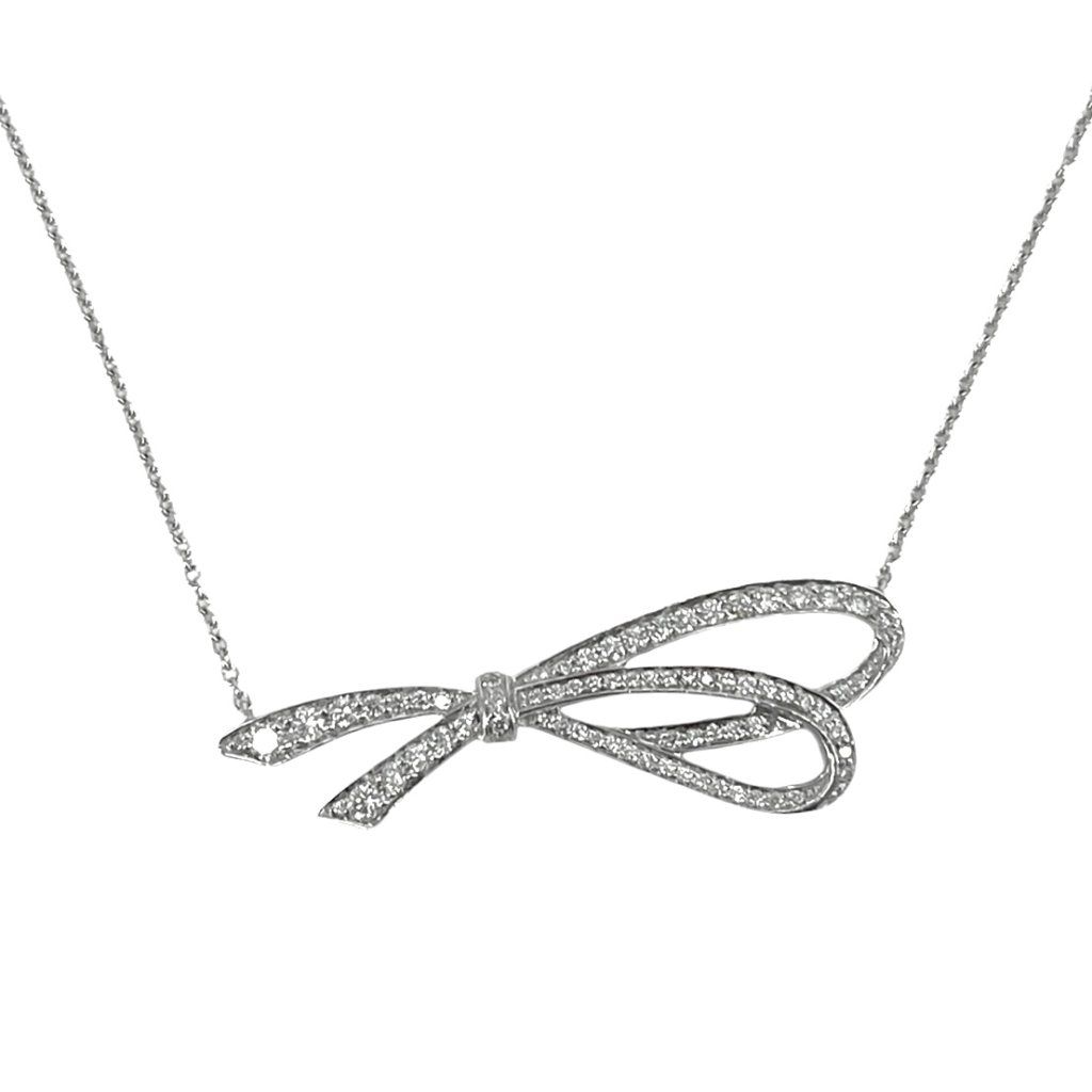 TIFFANY & CO Diamond Bow Pendant Necklace