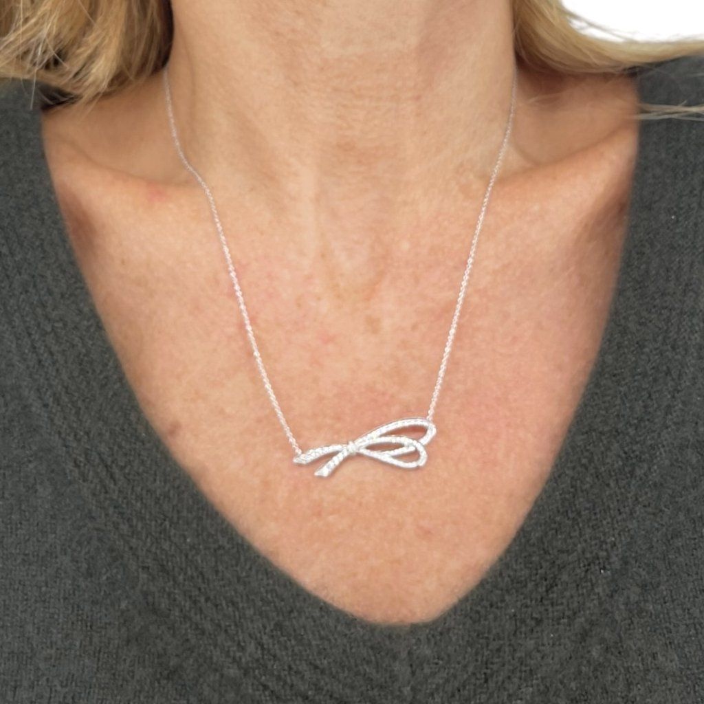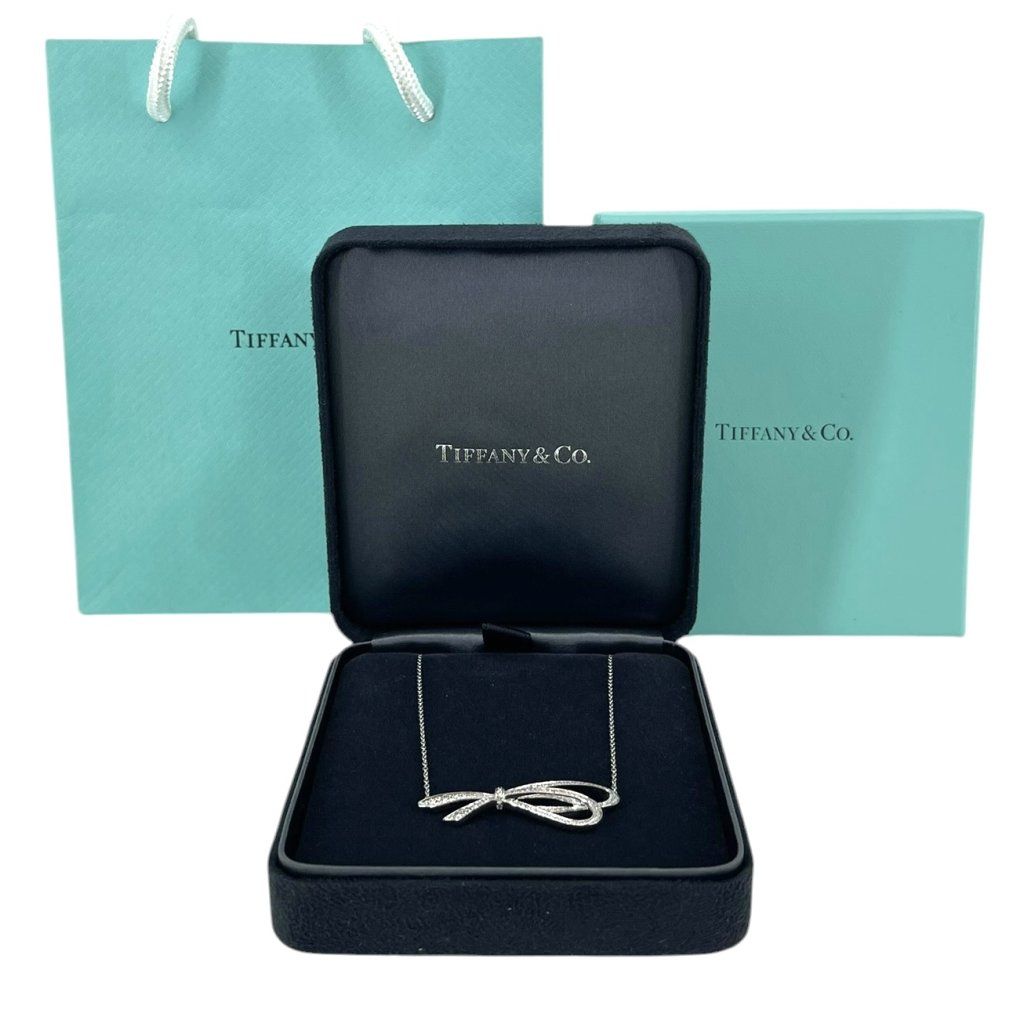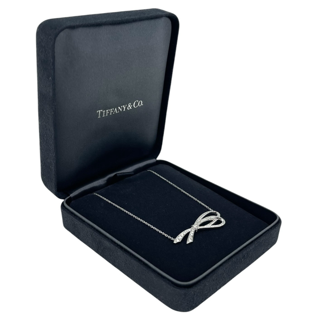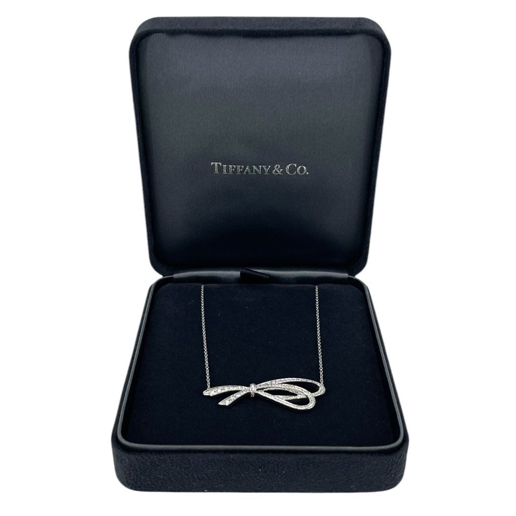 TIFFANY & CO Diamond Bow Pendant Necklace